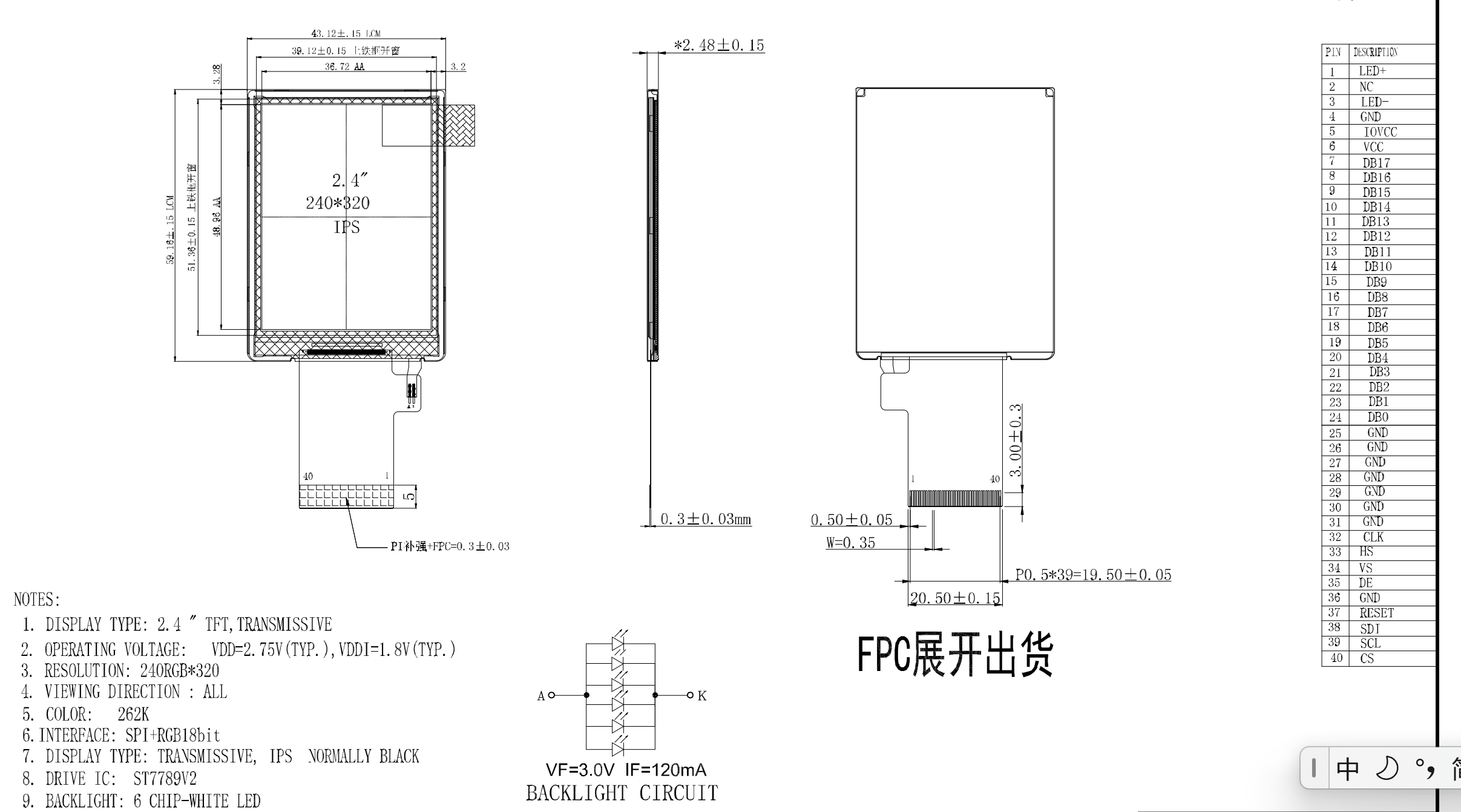 E. Protokół: Zwykle jest to uproszczona forma protokołu DSI (Display Serial Interface) MIPI D-PHY lub wyższy poziom interfejsu SPI. Na ekranach konsumenckich o przekątnej 2,4 cala często nazywa się go po prostu „szeregowym interfejsem RGB” lub „interfejsem SPI RGB”, zasadniczo wykorzystując serializator do konwersji równoległych sygnałów RGB na szeregowy strumień danych.