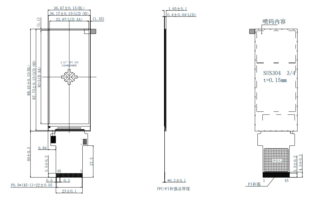 TenEkran paskowy o przekątnej 3,51 calaoferuje rozdzielczość 340*800, pełny kąt widzenia IPS i wykorzystuje dojrzały i stabilny układ scalony sterownika ST7701S. Obsługuje 16/18/24-bitowe interfejsy RGB i 1/2-kanałowe interfejsy MIPI. Numer modelu firmy Shenzhen Hongjia Technology to HJ3510-01. Posiada standardowe złącze 45-pinowe i pojemnościowy interfejs dotykowy I2C. Ten niewielki ekran typu barowego nadaje się do stosowania w małych urządzeniach gospodarstwa domowego, inteligentnych urządzeniach domowych, sprzęcie kosmetycznym, ekspresach do kawy, sprzęcie medycznym i innych produktach. Oferujemy również usługi dostosowywania.